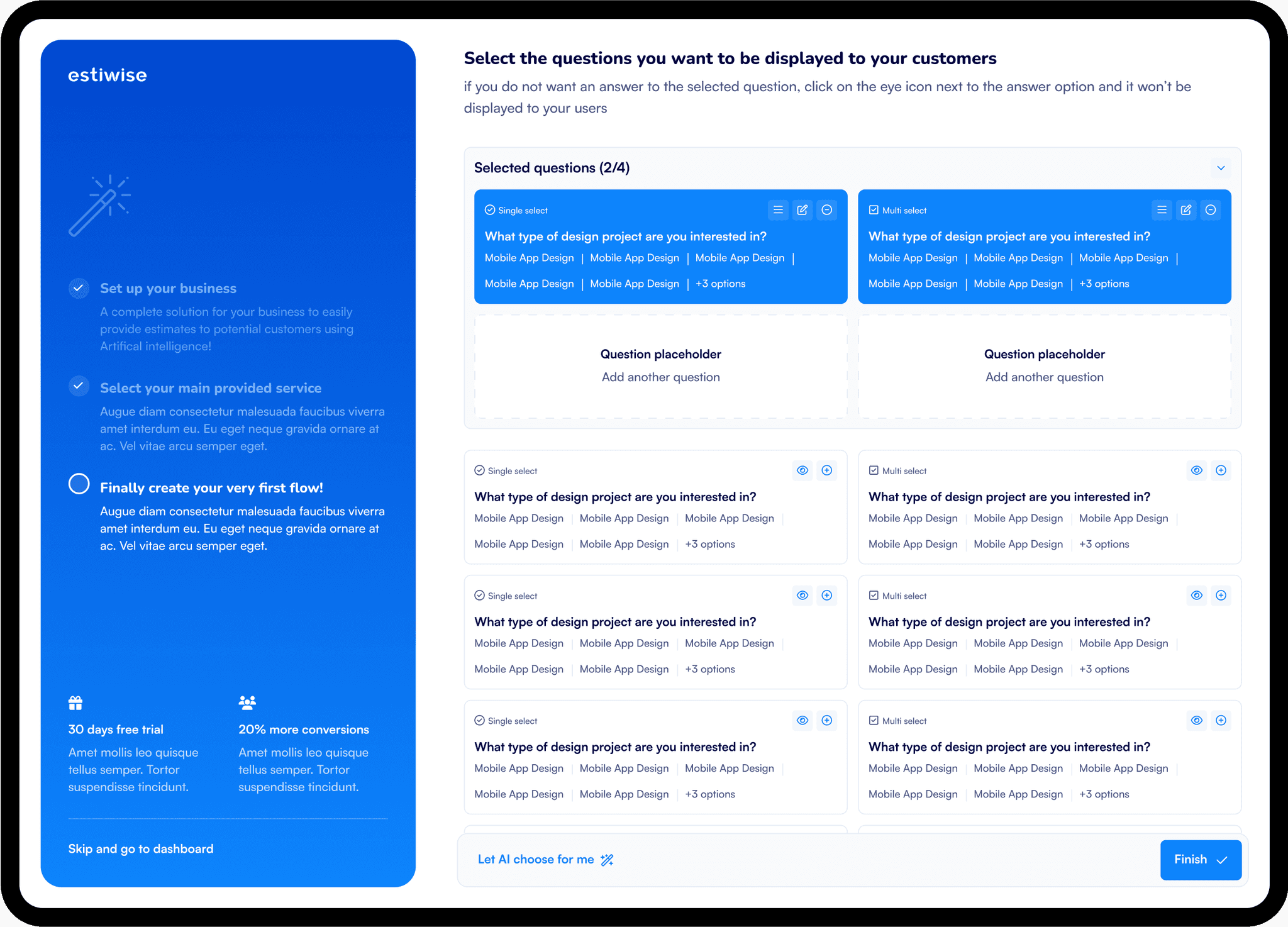 Let EstiWise automatically generate needs assessment questionnaires customized to your services, saving you time and effort.