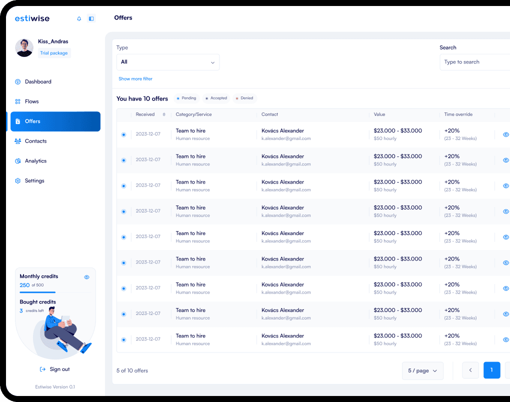 EstiWise automates the creation of project proposals, speeds up response time, reduces costs, and helps you focus on relevant inquiries.
